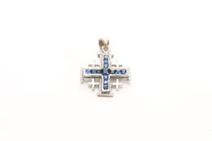 Jerusalem Cross Pendant – White Gold 14Kt, Diamond, Sapphire